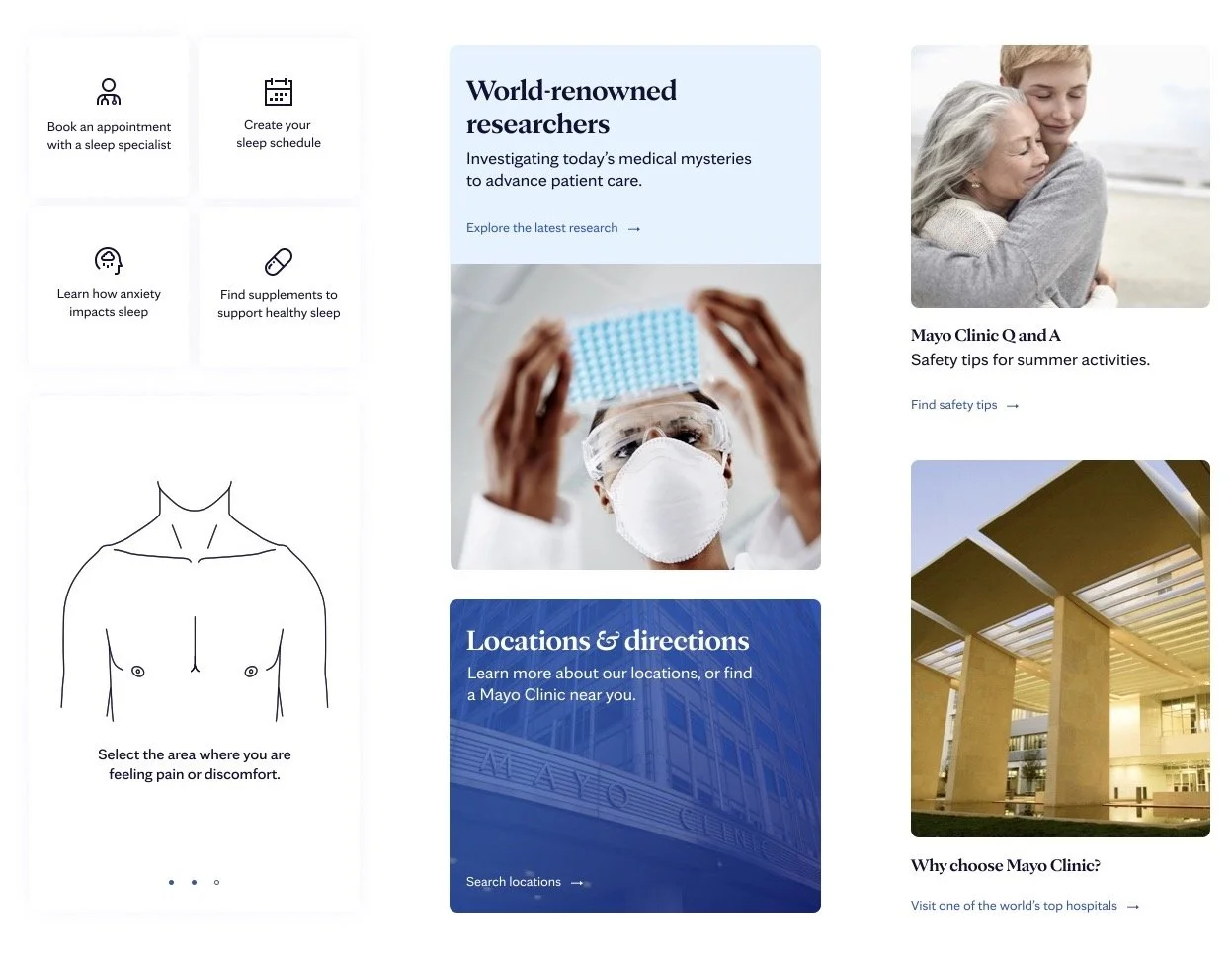 The Mayo Clinic is recognized as the best medical center in the world. Through full system redesign and build of a groundbreaking platform, we are transforming Mayo’s digital experience to be empathetic and pioneering as their care.
